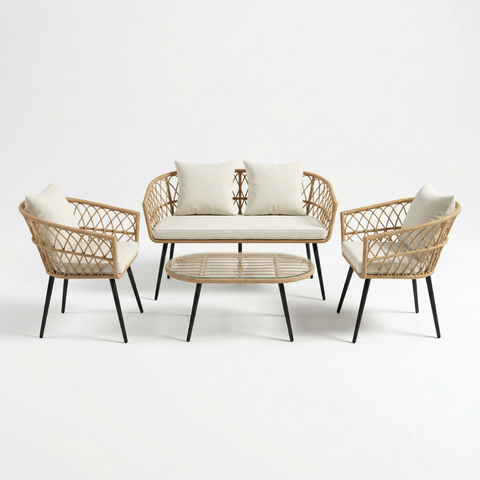 סט כורסאות מראטן לגינה ולמרפסת עם שולחן דגם מלדיביים
