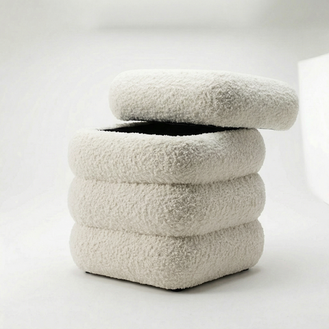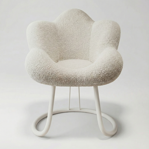 כסא בוקלה בעיצוב פרח לשידת איפור בצבע לבן