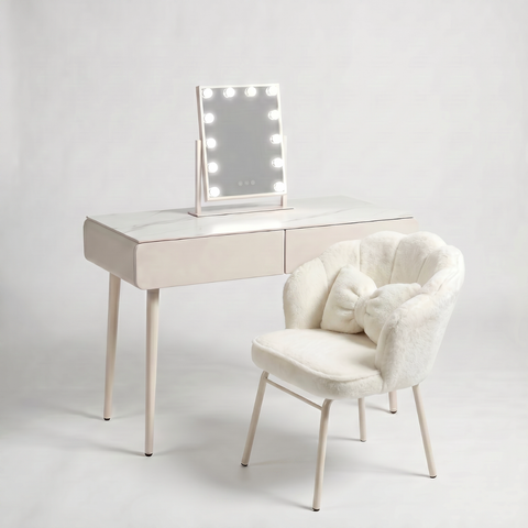 שידת איפור לבנה יוקרתית כולל כסא ומראה דגם סקיי