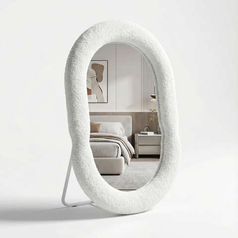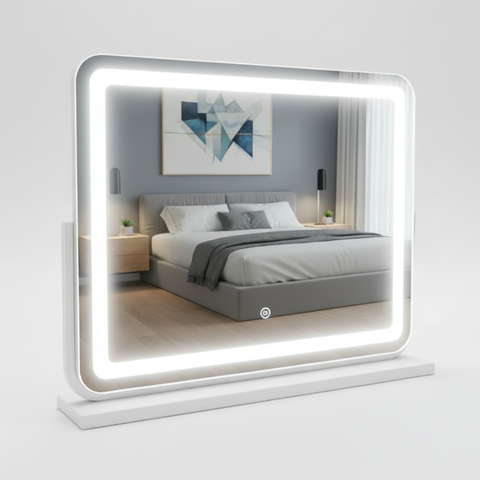 מראת לד מעוצבת עם תאורה לשידת איפור בצבע לבן 60*45