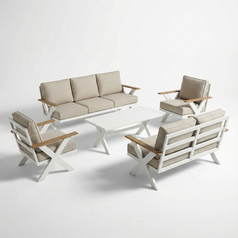 מערכת ישיבה מפוארת ואיכותית מאלומיניום 7 מקומות בצבע לבן דגם קולומבוס