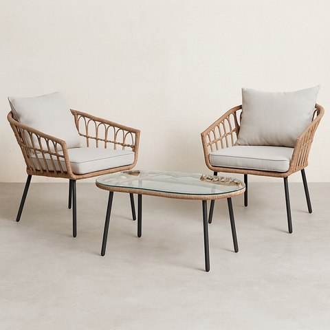 סט כורסאות מראטן לגינה ולמרפסת כולל שולחן דגם מלדיביים