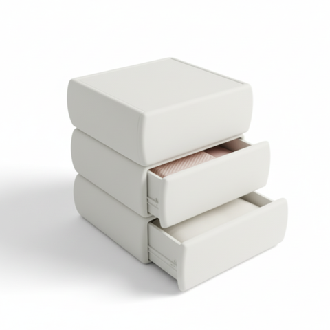 שידת לילה מעוצבת עם מגירות לחדר שינה בצבע לבן דגם לונדון