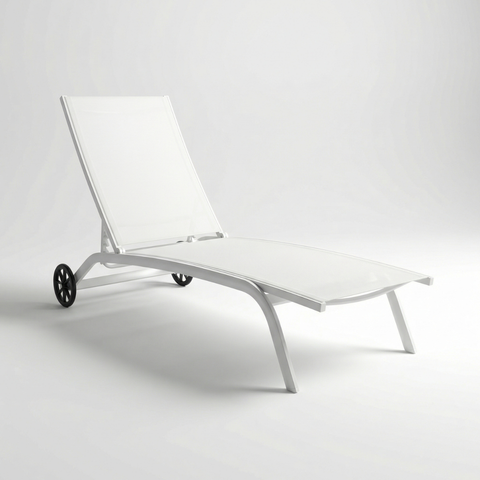 מיטת שיזוף מאלומיניום עם גלגלים לגינה ולמרפסת בצבע לבן דגם מאליבו