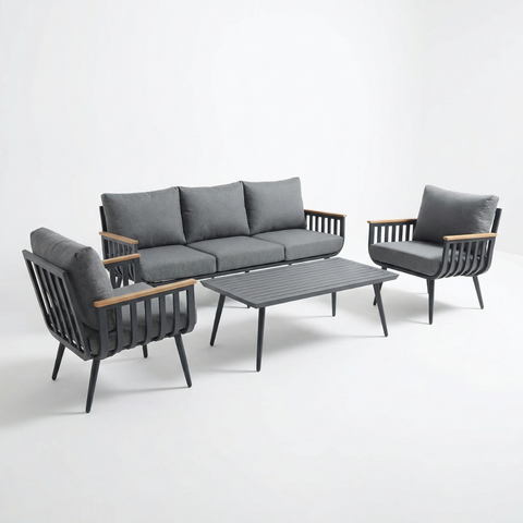 פינת ישיבה איכותית מעוצבת מאלומיניום בצבע אפור דגם בוסטון