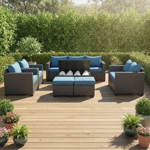 מערכת ישיבה ענקית לגינה 9 מקומות ישיבה בצבע חום דגם אוסטין