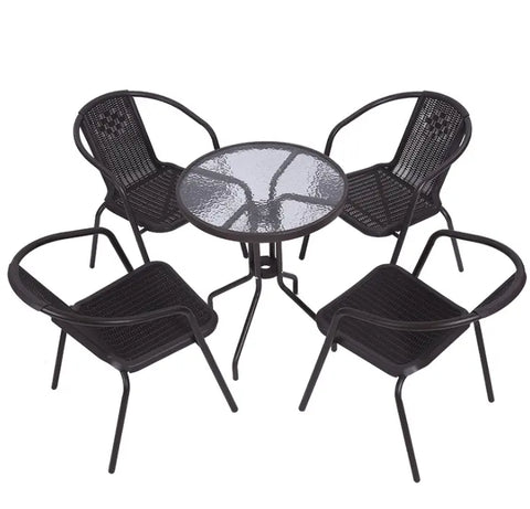 סט ביסטרו לגינה ולמרפסת שולחן עגול ו-4 כיסאות ראטן איכותיים