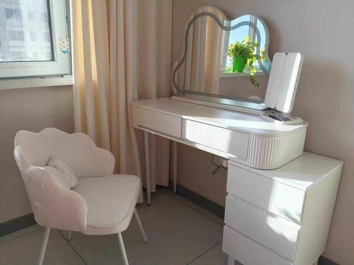 שידת איפור לבנה יוקרתית עם שידת צד כולל כסא ומראה דגם "סקיי"