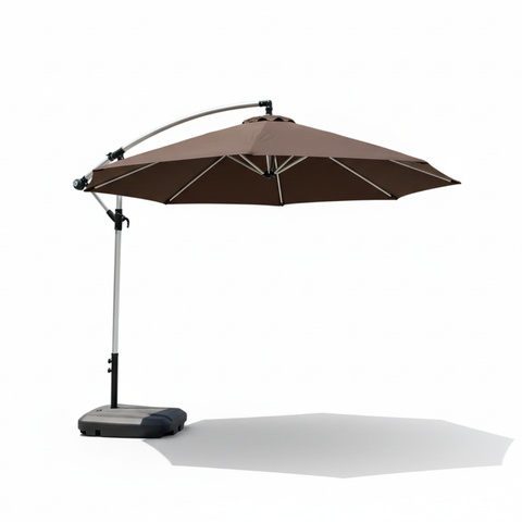 שמשיית צד איכותית ומחוזקת מאלומיניום קוטר 3 מטר לגינה ולמרפסת בצבע קפה - כולל בסיס
