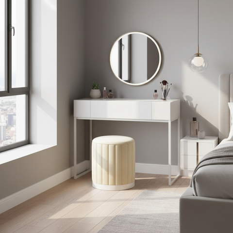 כורסא מעוצבת מבד בוקלה בצבע לבן