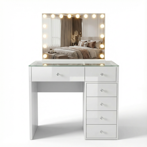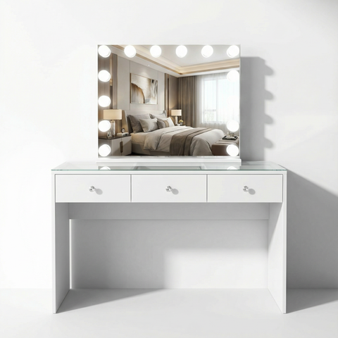 שידת איפור מקצועית בצבע לבן דגם מדריד