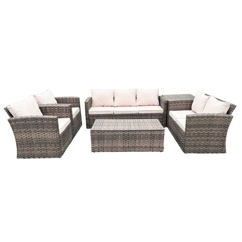 מערכת ישיבה ענקית מראטן איכותי 7 מקומות ישיבה כולל שולחן עם אחסון דגם הוליווד