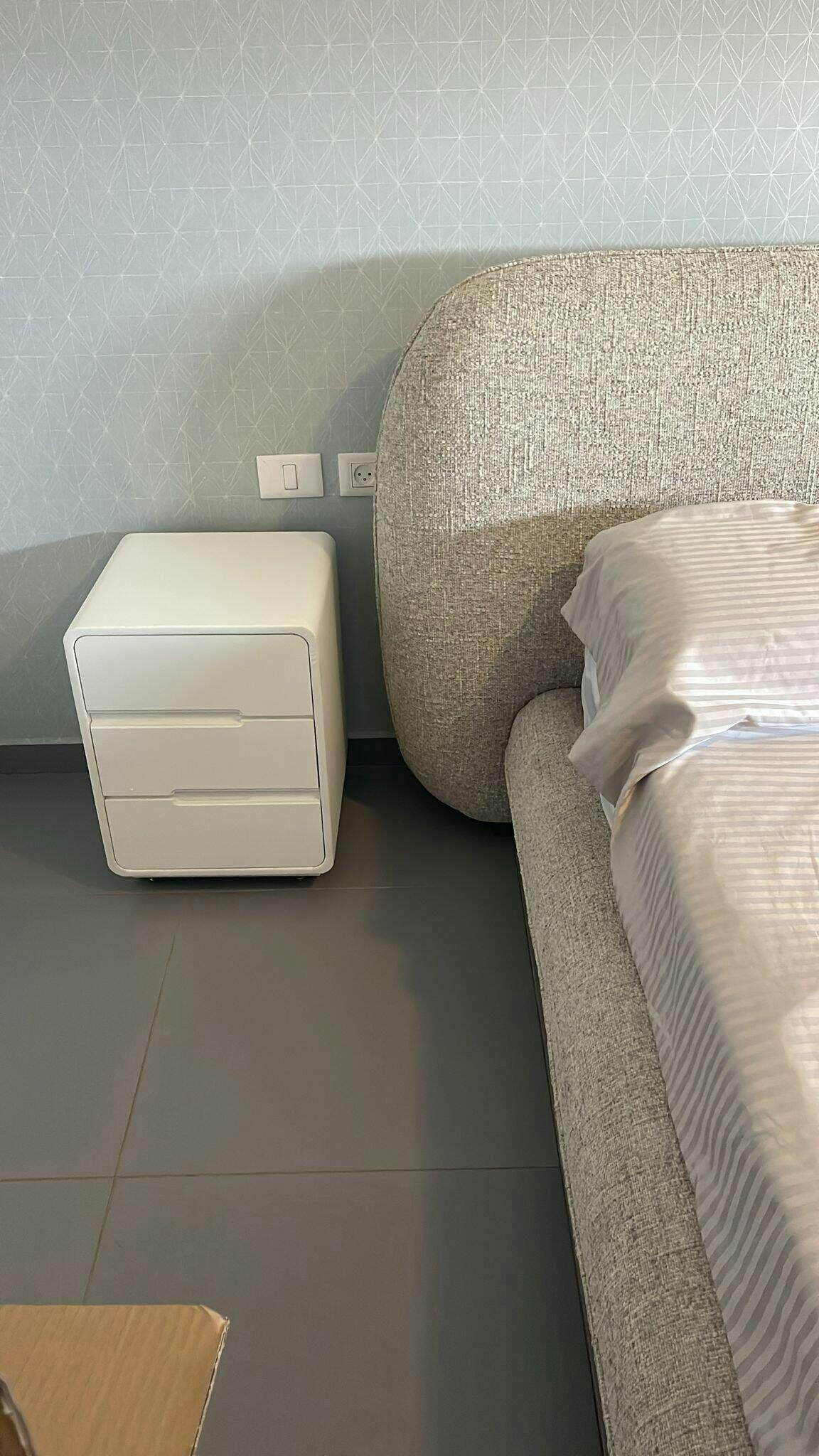 שידת לילה מעוצבת לחדר שינה בצבע לבן